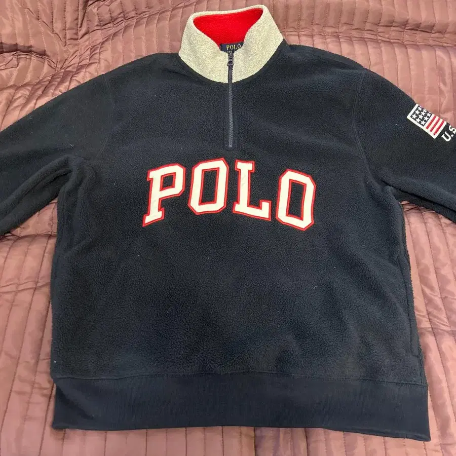 네이비 색상의 플리스 소재에 미국 국기 자수가 들어간 하프 지퍼 POLO 자켓. - 브랜드: POLO - 색상: 네이비 - 디자인: 미국 국기 자수 - 스타일: 하프 지퍼 - 소재: 플리스 방문해 주셔서 감사합니다. 사이즈 - M