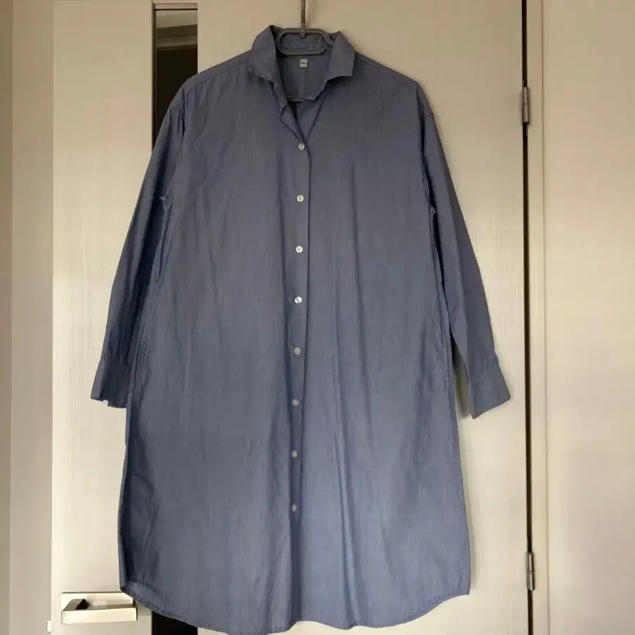 새상품급 네스트로브 린넨 100% 롱 셔츠 원피스 겉옷 파랑 블루