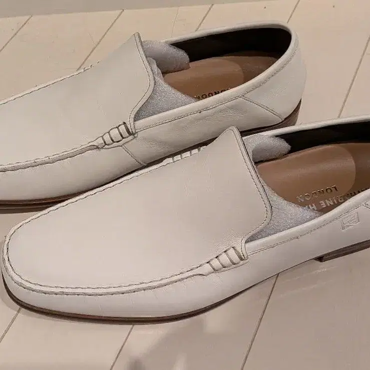 화이트 슬립온 로퍼, 세련된 디자인으로 캐주얼에도 포멀에도 최적. - 색상: 화이트 - 스타일: 로퍼 - 브랜드명: 캐서린 햄넷 - 디자인: 슬립온 방문해 주셔서 감사합니다. 색상 - 화이트 계열 얼룩, 찢김, 냄새 등 - 없음 박스 있음