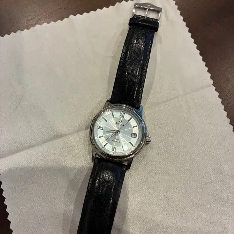 BULOVA 브로바 자동 시계입니다. 꽤 오래전에 구매하여 거의 사용하지 않고 보관했습니다. 현재 문제없이 작동하고 있습니다. 부속품은 없습니다. 또한 자동 시계의 특성상 언제 멈출지는 알 수 없으므로 이 점 양해 부탁드립니다. (도착 시 작동하지 않을 경우 연락 주세요.) 검토 잘 부탁드립니다.