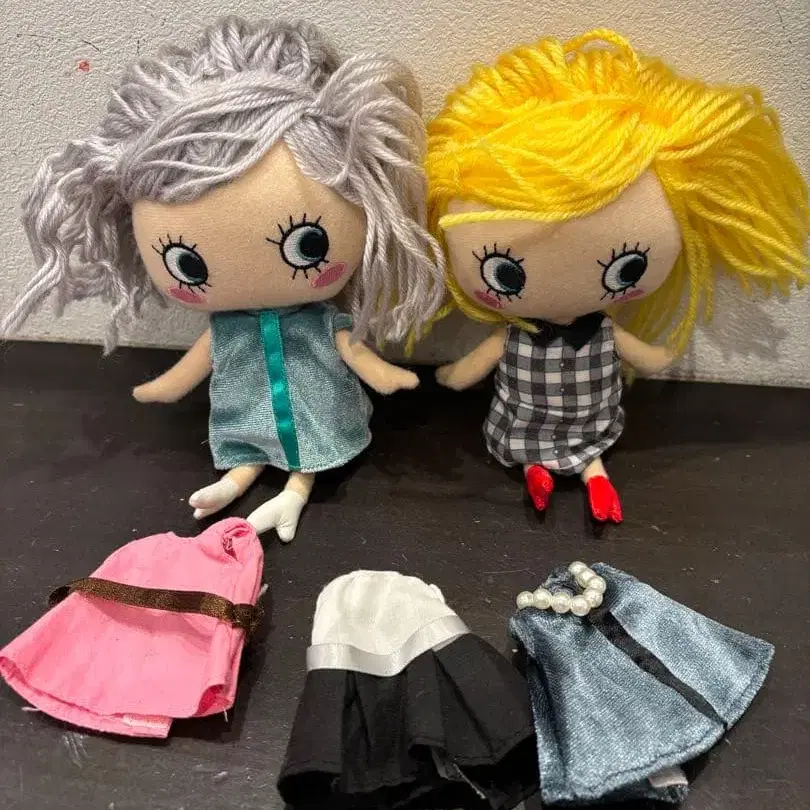 그레이와 옐로우 컬러의 커스텀 인형, 데님과 체크의 드레스 포함, 추가 드레스 3벌 있음. 커스텀 인형 2체와 추가 드레스 3벌 - 색상: 그레이와 옐로우 컬러의 머리카락 - 복장: 데님과 체크의 드레스 - 부속품: 추가 드레스 3벌 ( 핑크, 화이트, 파랑 ) - 눈: 큰 눈 디자인 - 스타일: 커스텀 인형 즉시 결제 OK. 단품 판매 상담 OK. 방문해 주셔서 감사합니다.