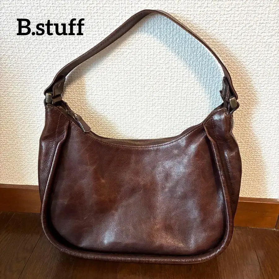 B.stuff 비 스태프 브라운 가죽 숄더백 여성용 천연 가죽