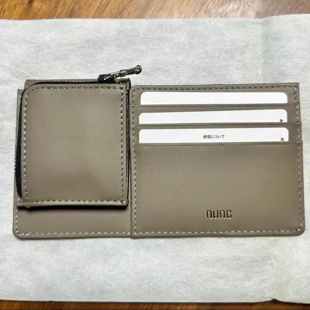 자동 번역되었어요. 원문보기소가죽 소재의 베이지 색상 장지갑, 카드 포켓 6개와 지퍼 포켓 부착.