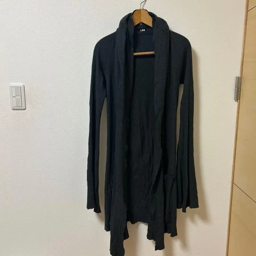 얇은 소재의 블랙 롱 가디건, 긴팔 디자인으로 스타일리시합니다.