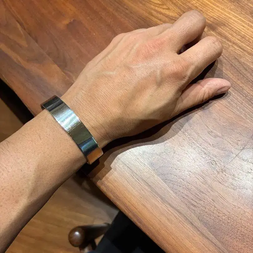 이전에 태국에서 구매했습니다. 사진으로는 알기 어렵지만 착용에 따른 약간의 흠집이 있으니 양해 부탁드립니다. 심플하고 사용하기 편리하다고 생각합니다. 폭: 약 15mm 무게: 약 26g