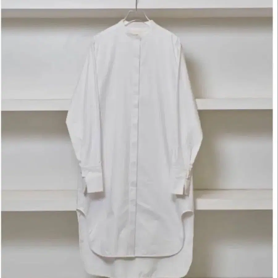 심플하고 세련된 디자인의 화이트 셔츠 원피스.