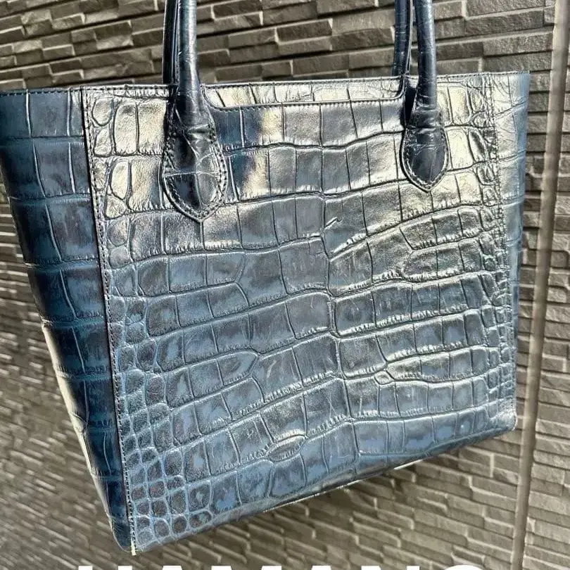 크로커다일 패턴 네이비 합성 피혁 토트백.