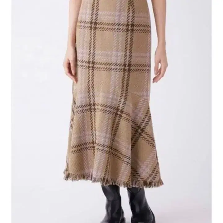미라 오웬 프린지 트위드 체크 머메이드 스커트