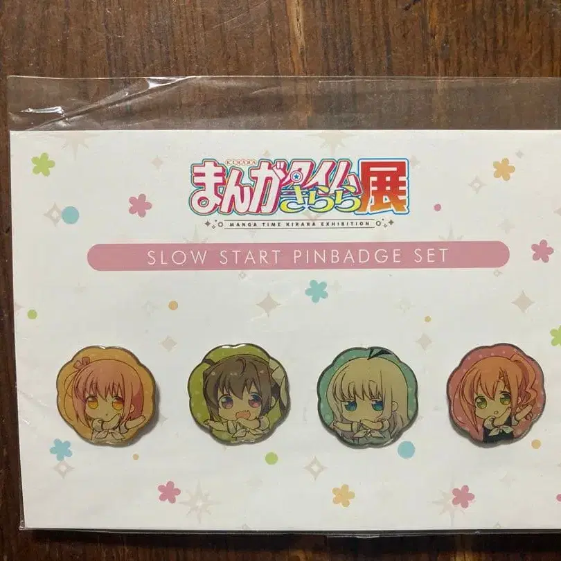 키라라전에 구매한 슬로우 스타트의 핀 배지 세트입니다. 미사용이지만 봉투에 접힌 부분이 있어 사진으로 확인 부탁드립니다.