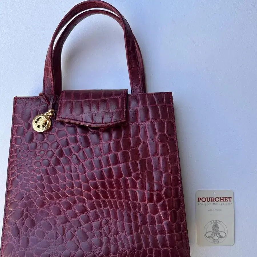 프랑스 노포 브랜드 POURCHET (푸르셰)의 악어 엠보싱 천연 가죽 핸드백입니다.