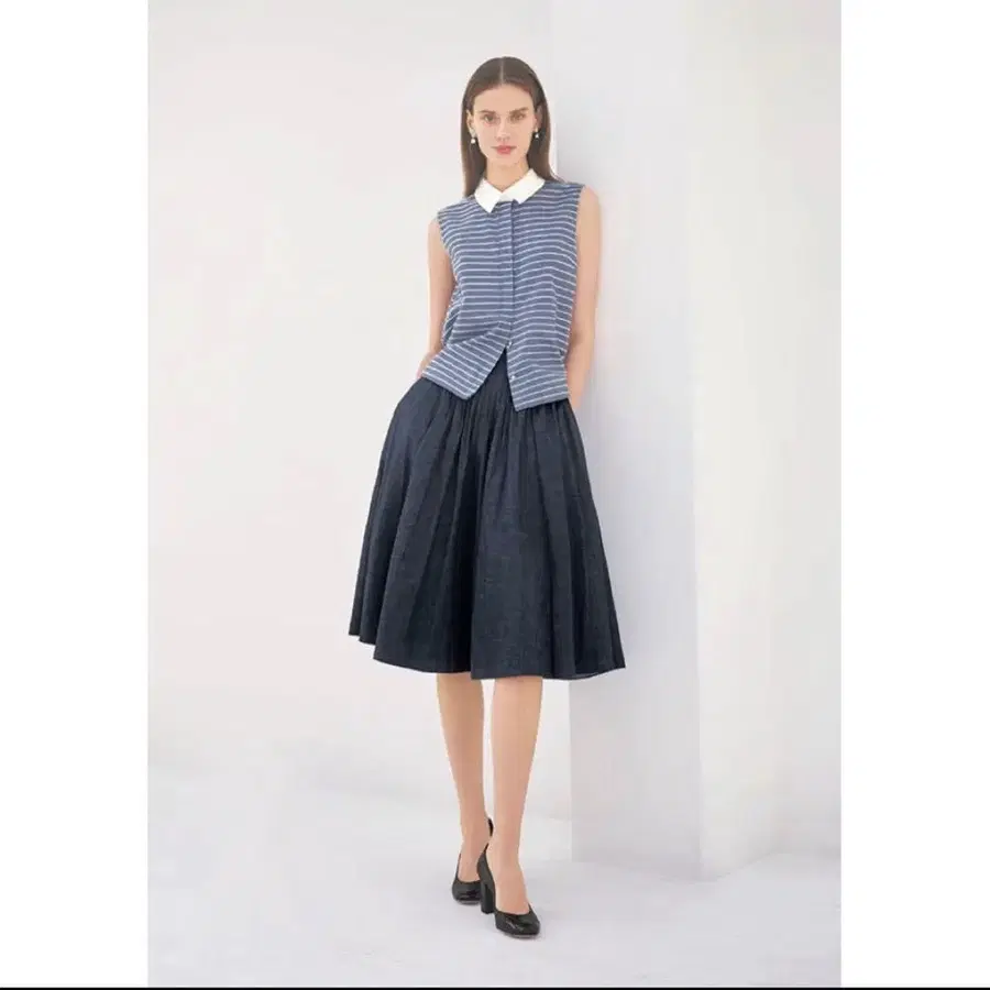 MACPHEE A라인 스트라이프 셔츠 블라우스 쁘띠 칼라