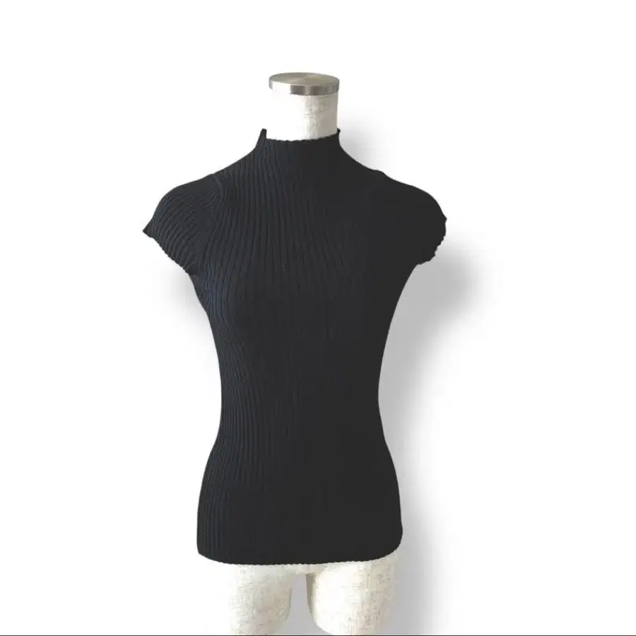 maje 리브 편직 반팔 하이넥 니트