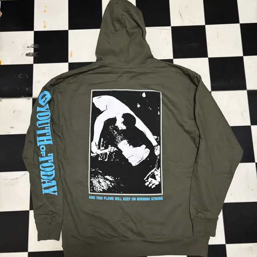 YOT 오피셜, 명곡 FLAME STILL BURNS 시리즈로 매년 발매했던 22년 ver, Take A Stand 재킷 모티브의 후드티입니다.