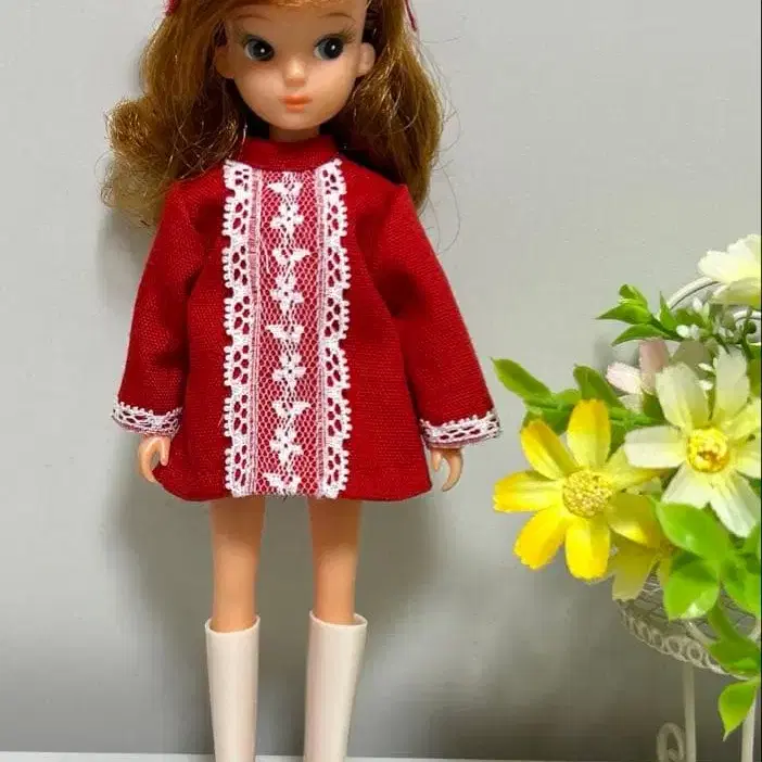 핸드메이드 복각판 리카짱 사이즈 빨간색 원피스 긴팔