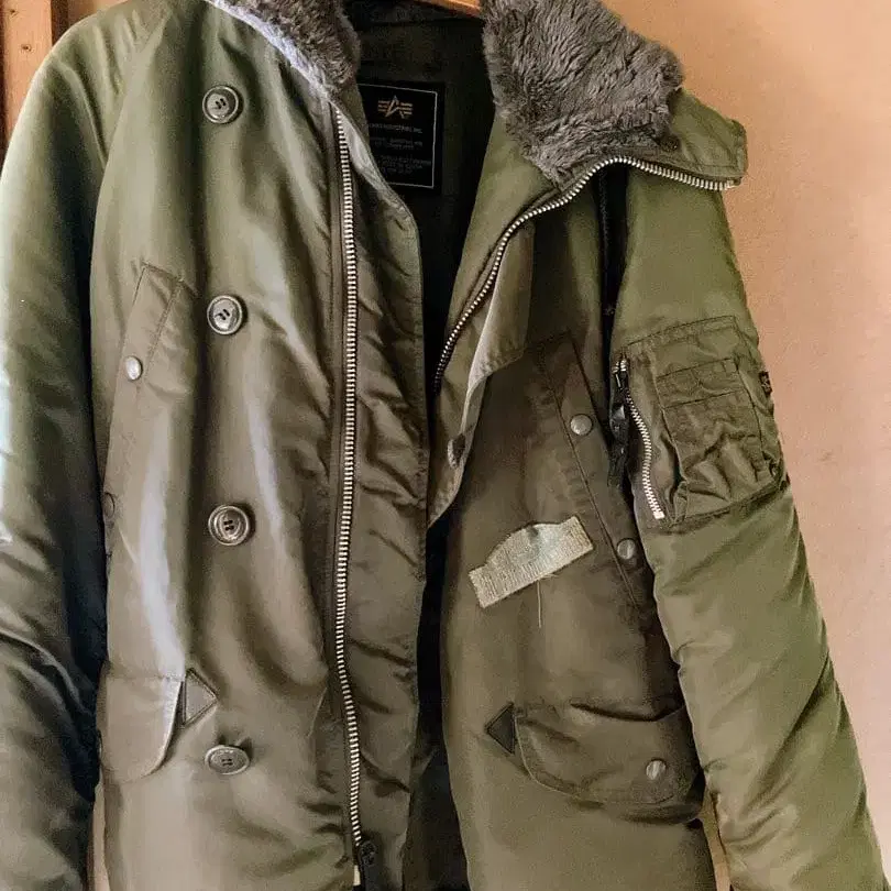 봐주셔서 감사합니다. 알파 인더스트리의 플라이트 자켓입니다. 사이즈는 M입니다. 대형 바이크를 타기 위해 구매했지만 사용 횟수는 적었고 보관했습니다. 찢김 등은 없습니다. 와펜을 달았지만 그대로 부탁드립니다. 구멍이 뚫린 것은 아닙니다. 영하 40도에서도 괜찮다는 것이 구매 이유이기도 합니다. 옷깃 주변의 퍼는 분리하여 없습니다. 괜찮으시다면 부탁드립니다. 올리브 색상의 더블 브레스트 밀리터리 자켓, 나일론 소재로 프론트 지퍼가 있습니다. - 색상: 올리브 - 디자인: 더블 브레스트 - 소재: 나일론 - 지퍼: 프론트 지퍼 - 로고: 자수 로고 색상 - 올리브 계열 얼룩, 찢김 없음