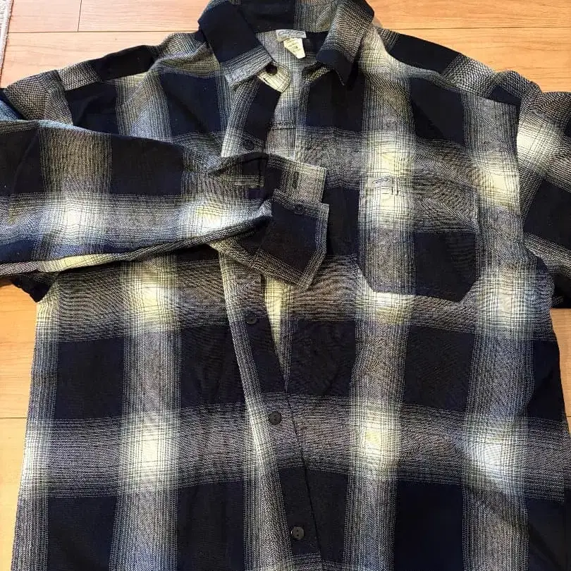 블랙과 화이트 체크 무늬의 플란넬 셔츠, 코튼 소재로 쾌적한 착용감.