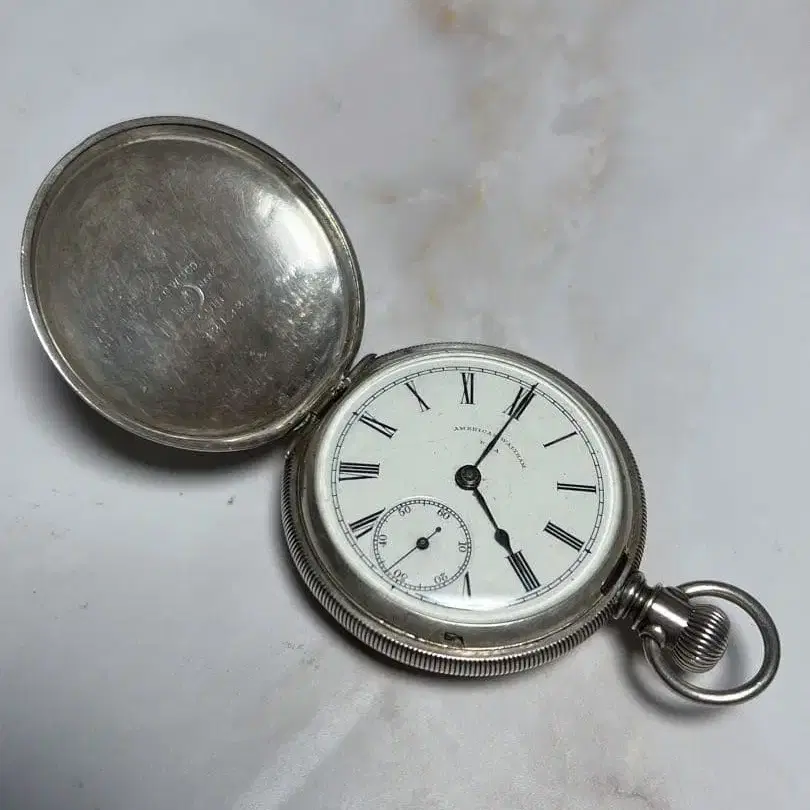 방문해 주셔서 감사합니다. Waltham의 앤티크 회중시계입니다. 실버 케이스에 화이트 다이얼, 로마 숫자 인덱스가 클래식한 분위기를 자아냅니다. 약 130년 전의 것으로 생각되는 회중시계입니다. 케이스는 코인 실버제로, 무브먼트 상태도 좋고 깨끗합니다. 태엽을 감으면 문제없이 작동하며, 24시간 이상의 연속 작동을 확인했습니다. Waltham 은 제품 순은 925 실버 스털링