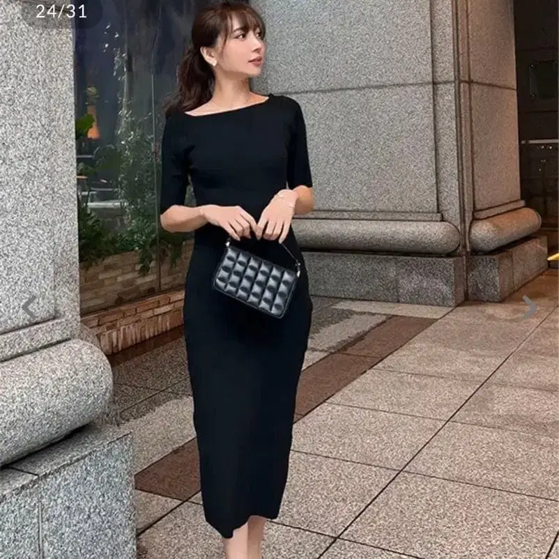 23구 블랙 퍼프 슬리브 타이트 원피스 관혼상제 온워드 빅