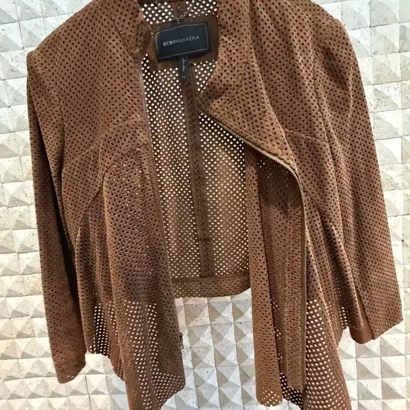 브라운 색상의 퍼포레이션 디자인, 노카라 숏 기장 자켓. - 브랜드: BCBGMAXAZRIA - 색상: 브라운 - 디자인: 퍼포레이션 디자인 - 스타일: 노카라 - 소재: 스웨이드풍 - 길이: 숏 기장 방문해 주셔서 감사합니다. 사이즈 - XS(SS)