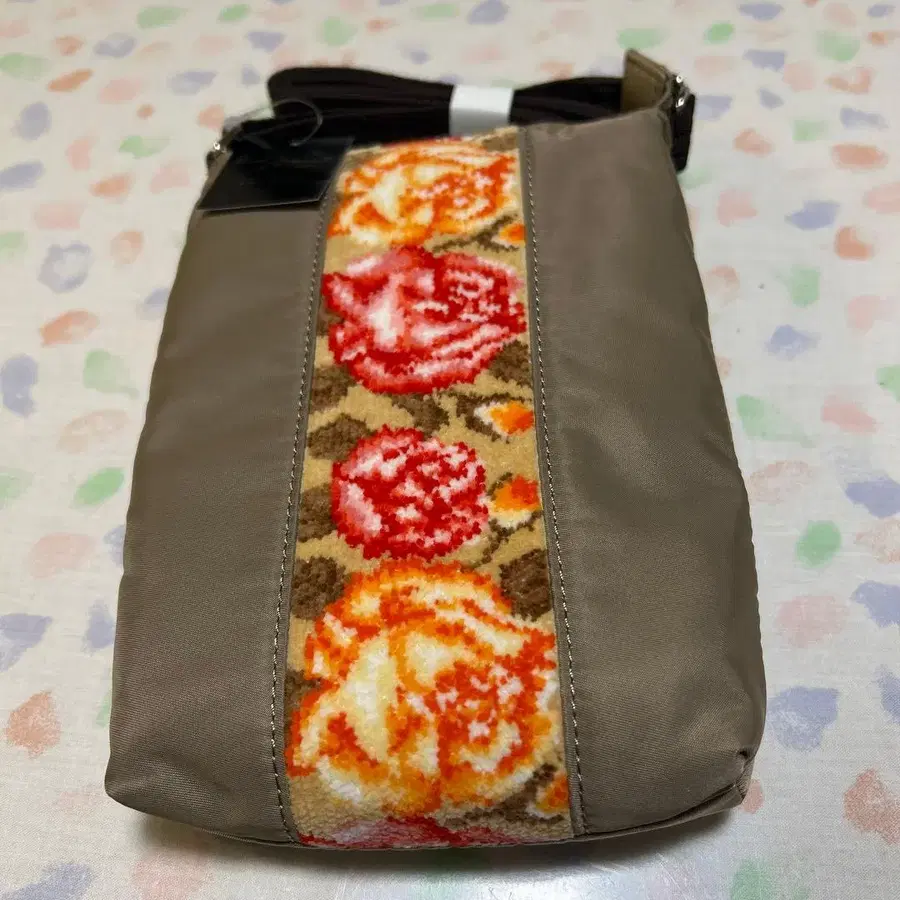 꽃무늬 자수가 특징인 브라운 사코슈. - 브랜드: Enjean - 색상: 카키빛이 도는 브라운 베이지 - 디자인: 중앙에 꽃무늬 슈니르 직물 - 포켓: 지퍼 포켓 있음 - 스트랩: 조절 가능한 스트랩 방문해 주셔서 감사합니다.