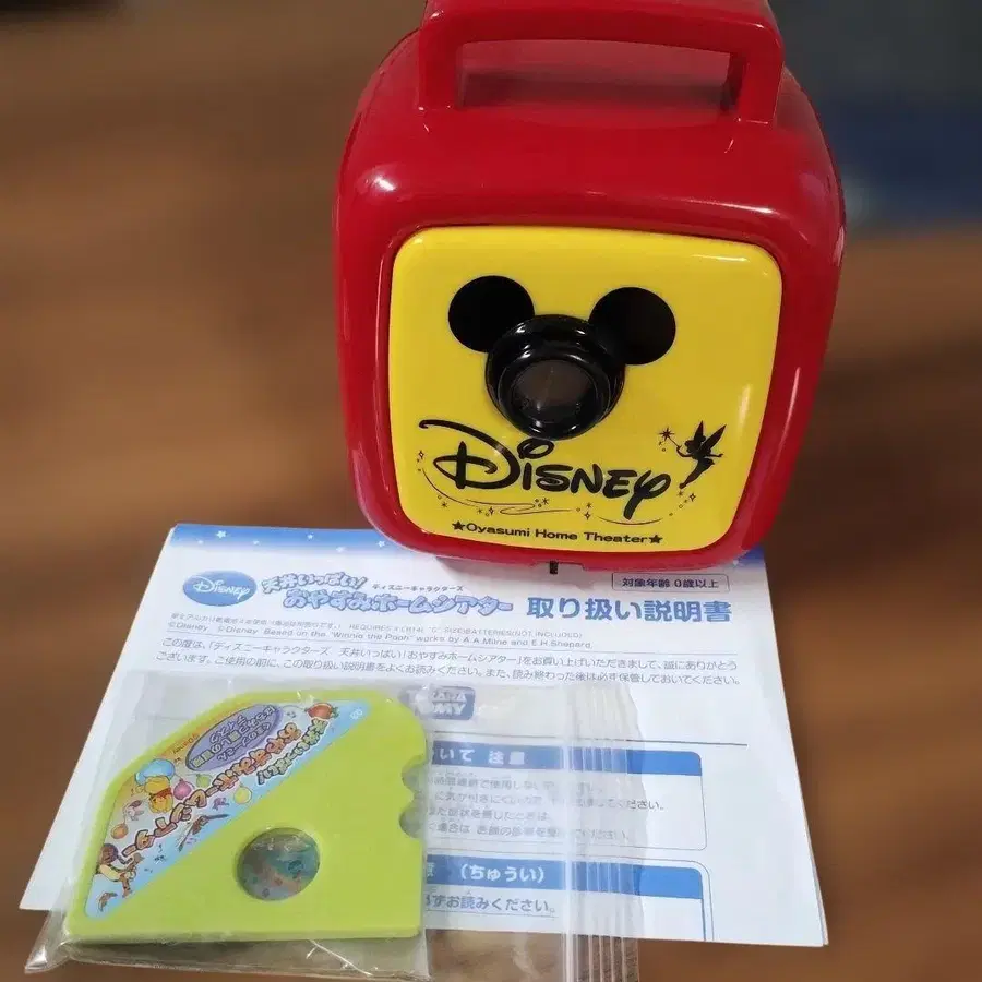 디즈니 캐릭터를 즐길 수 있는 오야스미 홈 시어터, 빨간색과 옐로우 컬러 디자인으로, 타카라토미 제조.