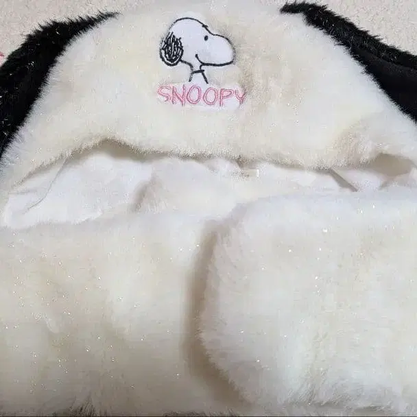 푹신푹신한 퍼 소재의 스누피 귀 달린 후드. - 캐릭터: 스누피 - 디자인: 귀 달린 후드 - 소재: 푹신푹신한 퍼 - 자수: 스누피 자수 - 색상: 화이트와 블랙 방문해 주셔서 감사합니다.