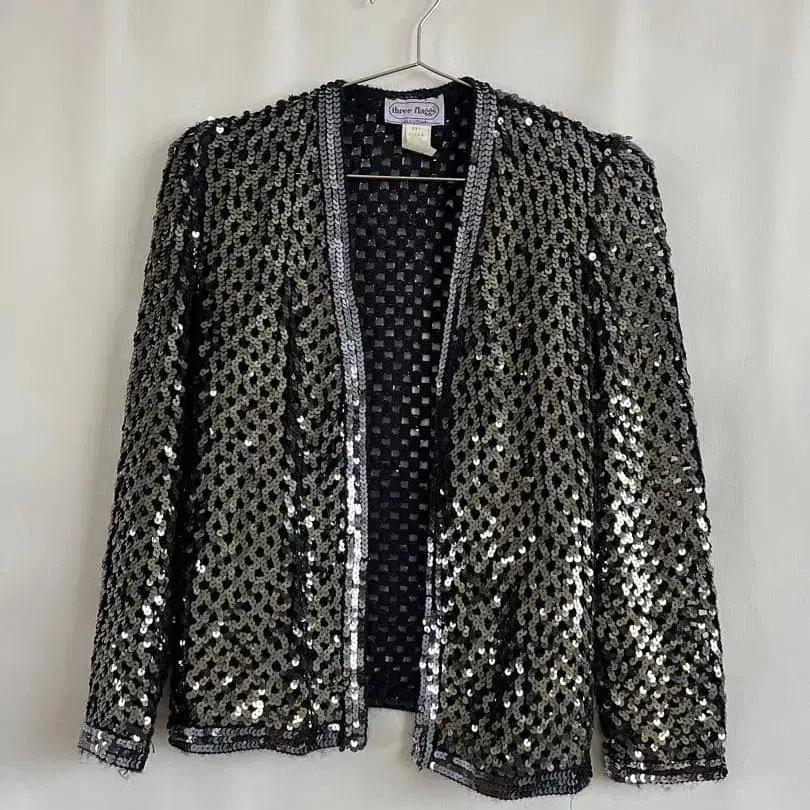 스팽글의 반짝임이 매력적인 노카라 자켓입니다. 올풀림이 있는 부분도 있습니다. - 브랜드: three fingers - 색상: 블랙 실버 - 소재: 스팽글 - 디자인: 노카라 오픈 프론트 방문해 주셔서 감사합니다. 사이즈 - FREE SIZE