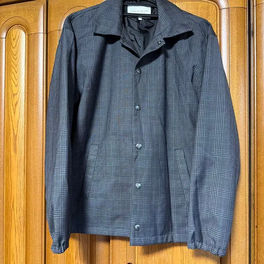 그레이 계열 체크 단추식 자켓, S 사이즈.