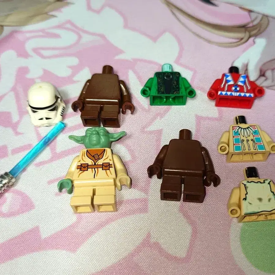 다양한 스타 워즈 캐릭터의 LEGO 피규어와 의상 부품 세트. 사진에 있는 것이 전부입니다. - 캐릭터: 요다(핸드 부품 결품) 기타 부품 세트 방문해 주셔서 감사합니다.