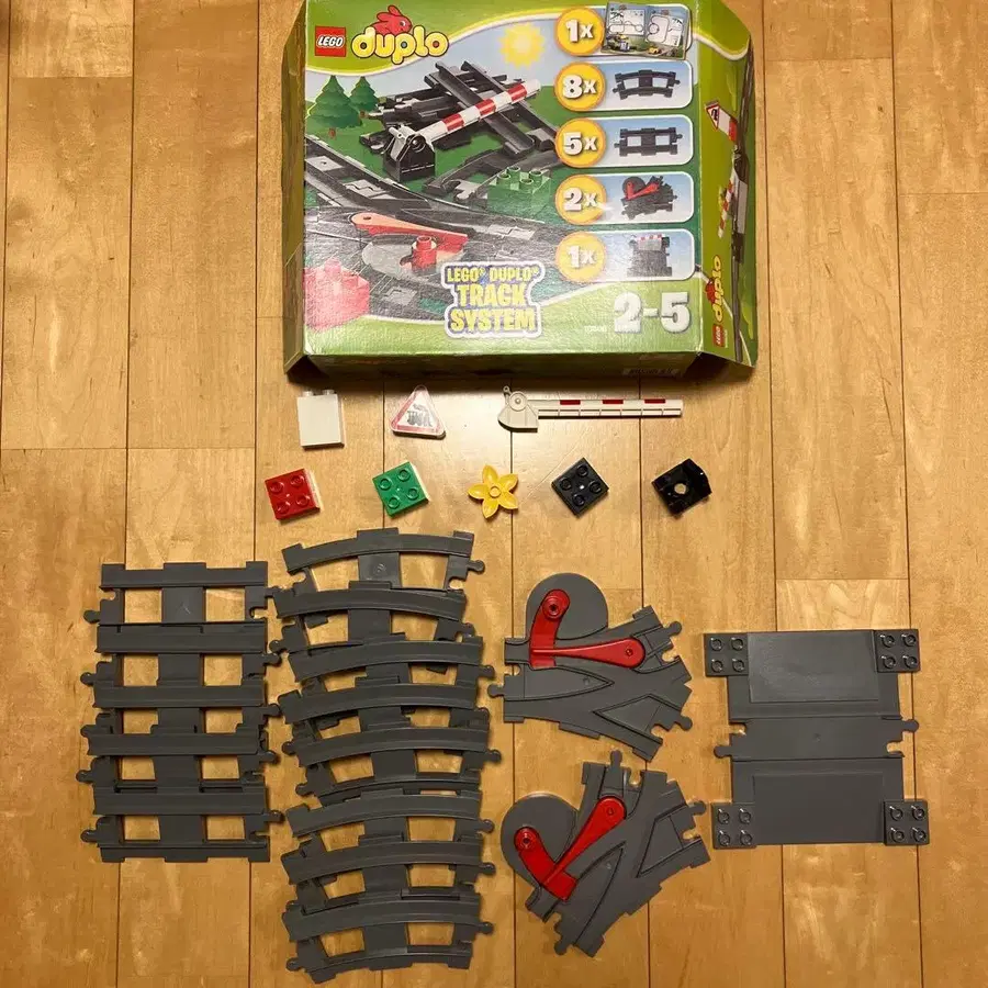 기차 레일 세트 듀플로 레일 확장에 어떠신가요? 차단기와 전환 포인트도 있습니다. 부품은 모두 갖추어져 있습니다. 설명서는 없습니다. 비교적 새상품급으로, 눈에 띄는 흠집이나 얼룩 등은 없지만 중고품에 이해가 있으신 분, 잘 부탁드립니다. 레고 종류 - 레고 듀플로
