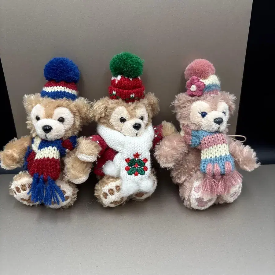 겨울 모자와 머플러를 착용한 귀여운 닷피 & 셰리메이 키링 세트. - 종류: 봉제 인형 키링 - 색상: 베이지, 핑크, 빨간색 - 디자인: 겨울 모자와 머플러 착용 - 특징: 볼 체인 포함 - 브랜드: 디즈니 방문해 주셔서 감사합니다.