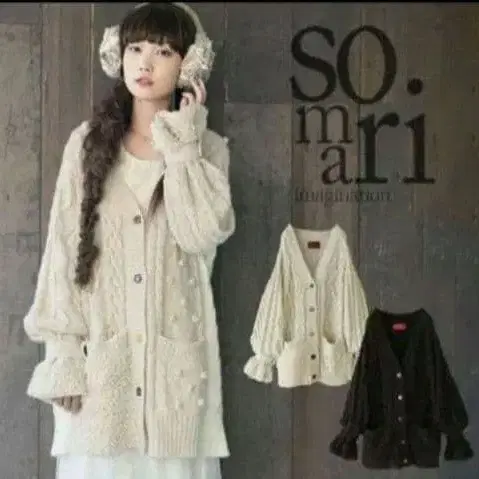 레어 레어 오샤레 워커 somari 케이블 니트 가디건 아이보리