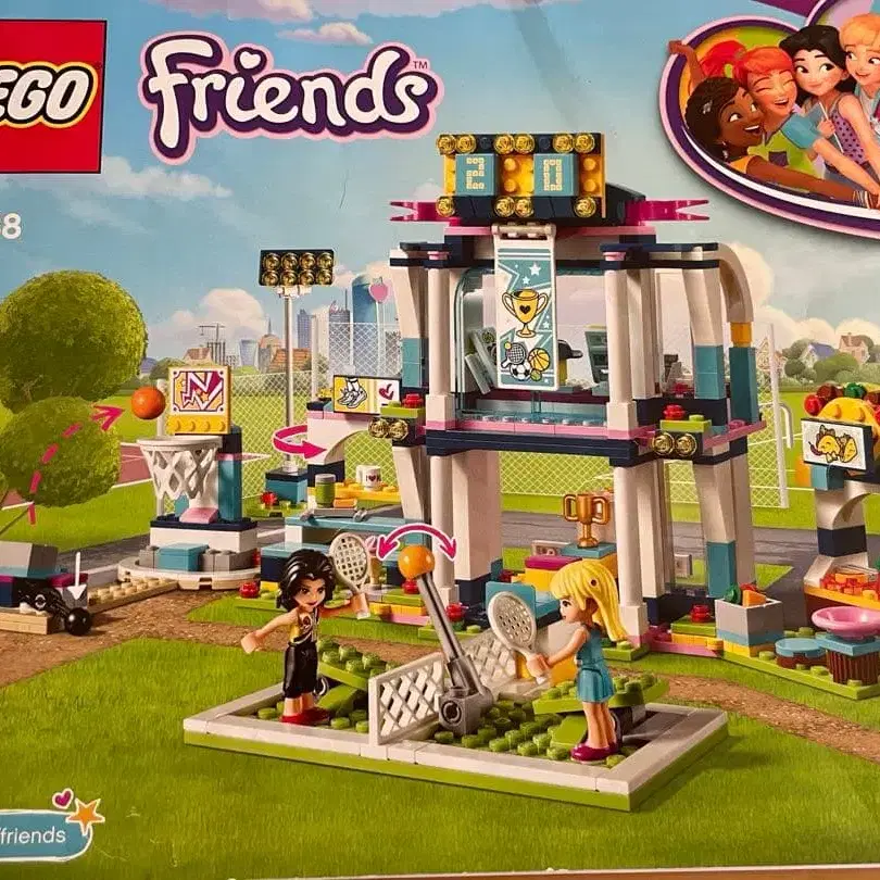 LEGO Friends 41338 스포츠 이벤트 세트로, 스타디움과 피규어가 포함되어 있습니다.