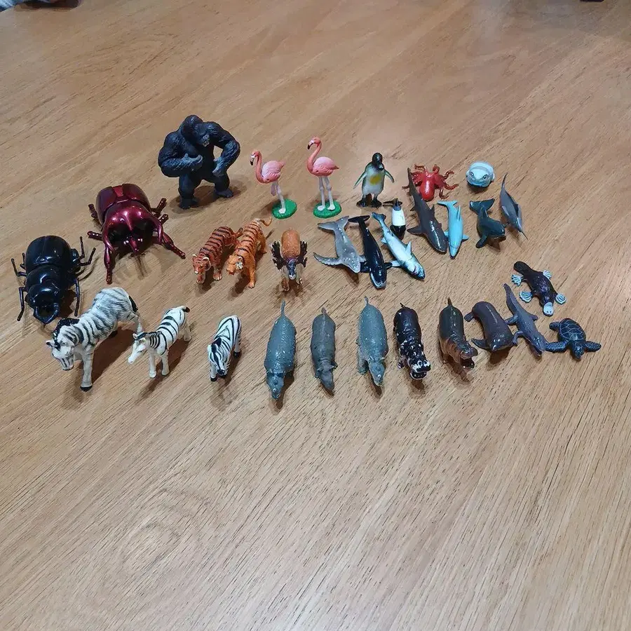 다채로운 동물 피규어 세트, 플라스틱 재질로 약 2~5cm 사이즈. - 동물 종류: 고릴라, 플라밍고, 호랑이, 얼룩말, 고래, 상어, 하마, 펭귄, 장수풍뎅이 - 소재: 플라스틱제 - 세트 내용: 동물 피규어 세트 - 색상: 다색 - 사이즈: 각 피규어 약 2~5cm 방문해 주셔서 감사합니다.