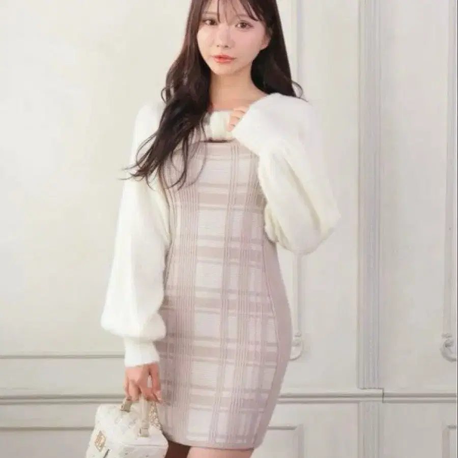 • LIP SERVICE 체크 자카드 앙상블 니트 원피스
