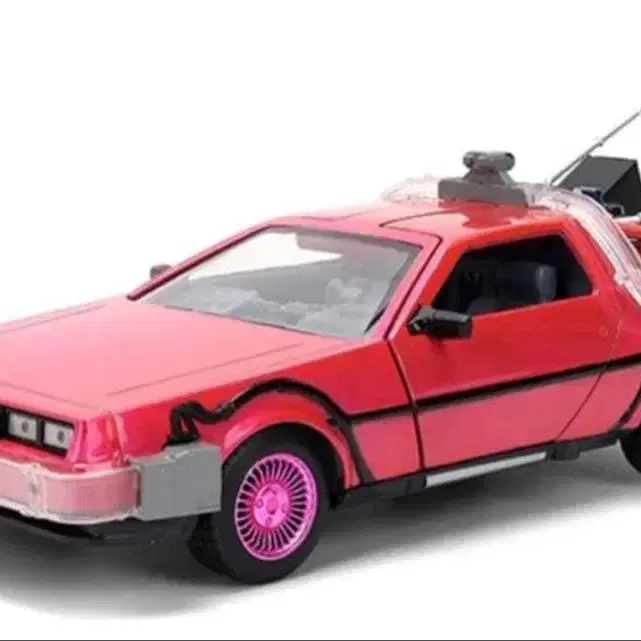 다이캐스트 소재의 핑크색 델로리안, 백 투 더 퓨처 타임머신 모델.