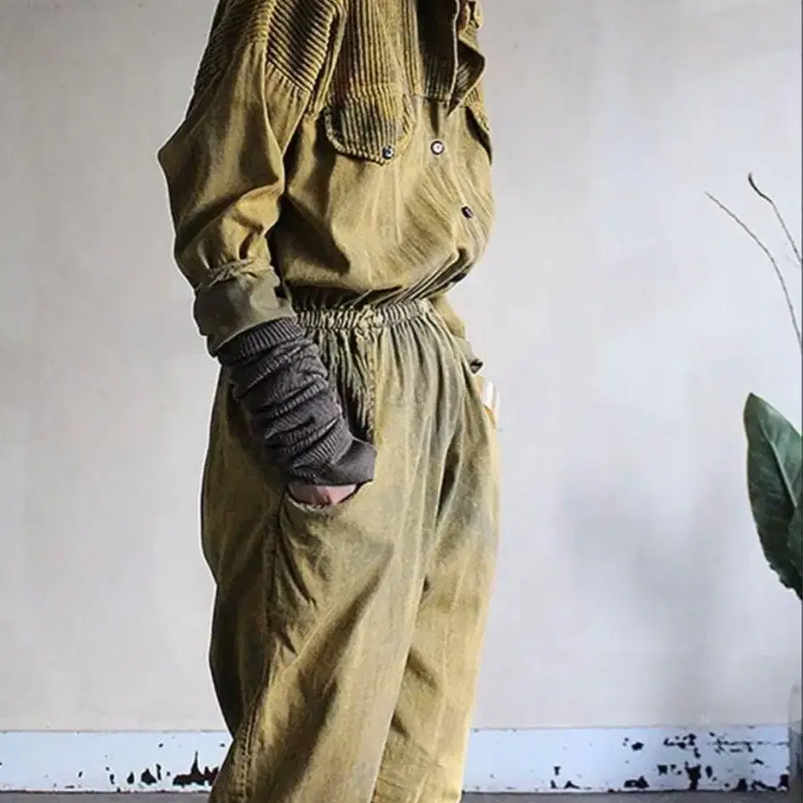 카키색 코듀로이 소재의 긴팔 올인원입니다. 허리밴딩과 포켓이 있어 기능적입니다. sunny vintage에서 구매했습니다. - 색상: 카키 - 디자인: 코듀로이 소재, 긴팔, 단추식 - 특징: 허리밴딩, 포켓 부착 방문해 주셔서 감사합니다. 사이즈 - FREE SIZE