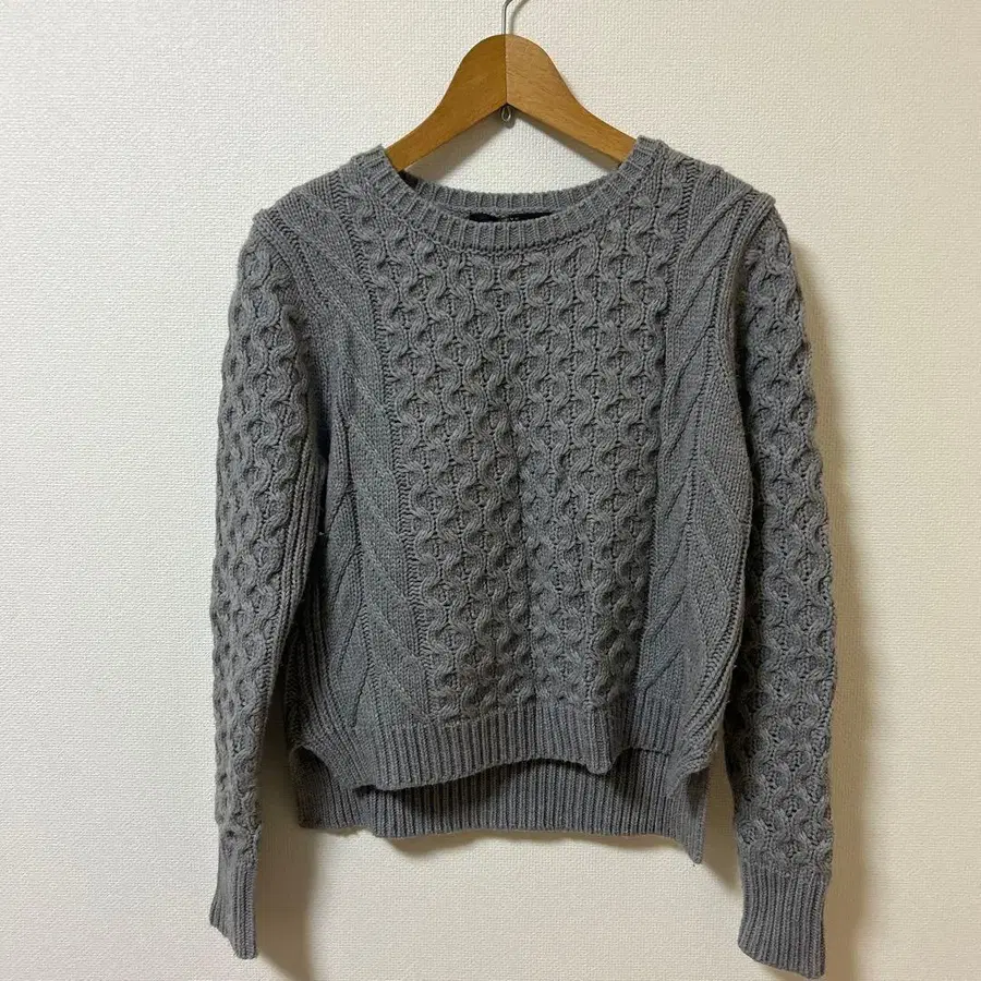 케이블 니트 디자인의 그레이 색상 긴팔 스웨터. - 색상: 그레이 - 디자인: 케이블 니트 - 소매 길이: 긴팔 - 밑단 디자인: 앞쪽이 더 긴 디자인 방문해 주셔서 감사합니다. 사이즈 - FREE SIZE