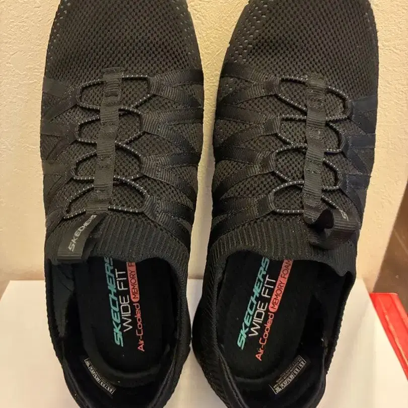 경량 메쉬 소재의 슬립온 스니커즈, 와이드 핏 디자인으로 쾌적한 착용감. - 브랜드: Skechers - 색상: 블랙 - 스타일: 스니커즈 - 특징: 와이드 핏 - 밑창: 경량 밑창 - 소재: 메쉬 - 디자인: 슬립온 스타일 방문해 주셔서 감사합니다. 사이즈 - 23.5cm