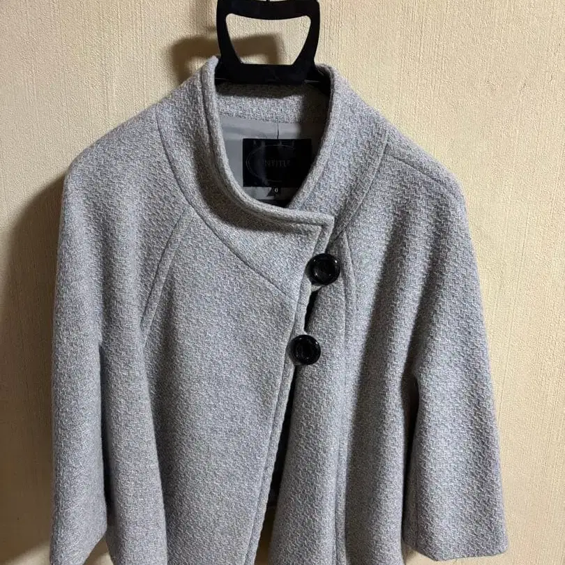 그레이 색상의 UNTITLED 브랜드 케이프 코트입니다. 버튼이 달려 있어 스타일리시합니다.