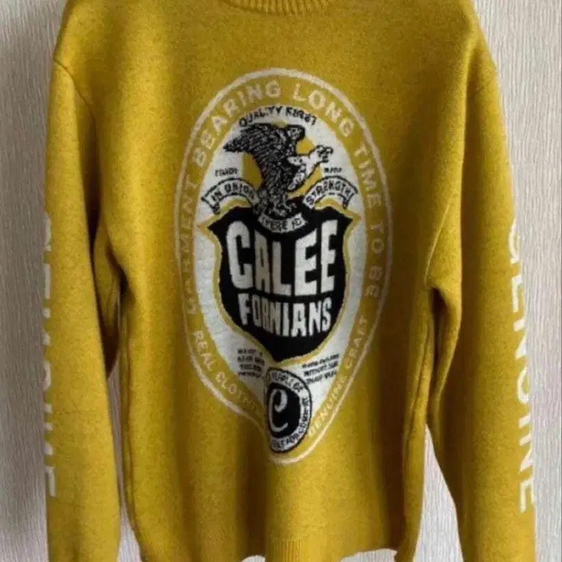calee 소매 로고 울 니트 사이즈 L ( 초레어, 초레어 ) 컬러 머스타드 ( 초레어 ) 기장 약 70, 가슴 너비 약 53, 어깨 너비 약 50 즉시 완판되었으며 지금까지의 calee 니트 중 단연 돋보이는 매우 멋진 니트입니다. 약간 타이트한 디자인이라 S, M 사이즈는 작지만, L 사이즈는 어느 정도 빅 사이즈라고 생각합니다. 더욱이 가을/겨울에 어두워지기 쉬운 의류에 이 색상은 매우 멋집니다. 시장에서 L 사이즈는 거의 찾아보기 힘들며, 머스타드 색상은 어떤 사이즈든 중고품이 없고, 일본에서도 판매 중인 것은 이 한 벌뿐인 초 프리미어 상품입니다. 니트로 이렇게 멋진 상품은 좀처럼 나오지 않으며, 유행을 타지 않고 오랫동안 와일드하고 멋지게 착용할 수 있습니다. 착용했지만 일반적인 깨끗한 상품이라고 생각하지만, 몇 군데 얼룩이 있지만 이 컬러이기 때문에 거의 눈에 띄지 않습니다. 어디까지나 중고품이므로 이해하신 후 구매 잘 부탁드립니다. 잘 부탁드립니다.