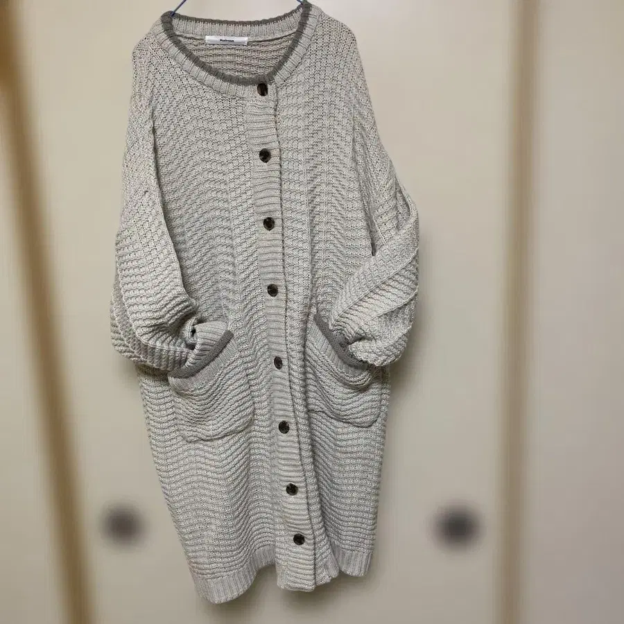 내추럴 꾸뛰르 큼직하게 짠 니트 가디건 그레이지