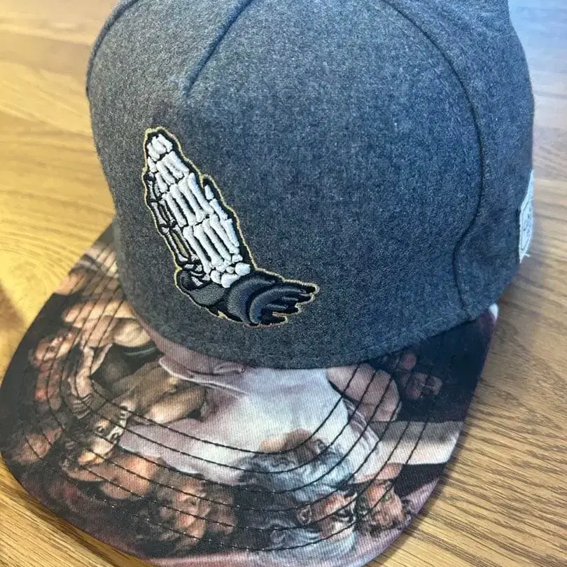스켈레톤 손 자수의 그레이 캡, 아트 프린트 챙 부착.
