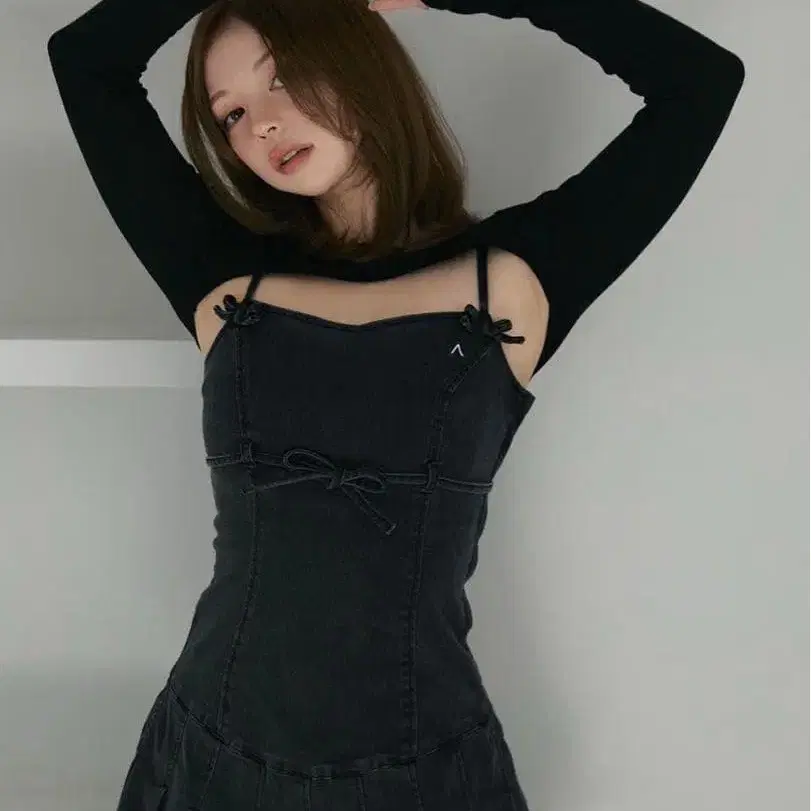 muta 무타 대인기 색상 블랙 x 블랙 본딩 미니 원피스
