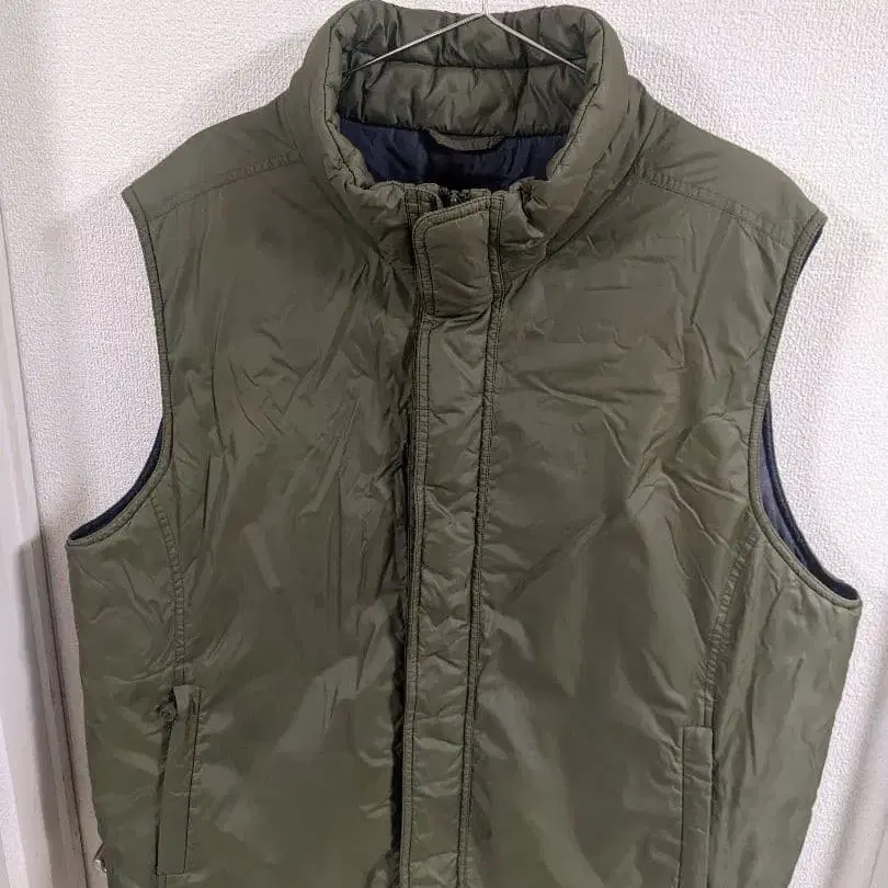 올리브 그린 색상의 스탠드 카라 충전솜 베스트입니다. 프론트 지퍼와 벨크로 클로징이 있으며, 심플하면서도 기능적인 디자인입니다. 레벨 7과 같은 디자인이 멋집니다. 막 빨아도 되어서 추천합니다.