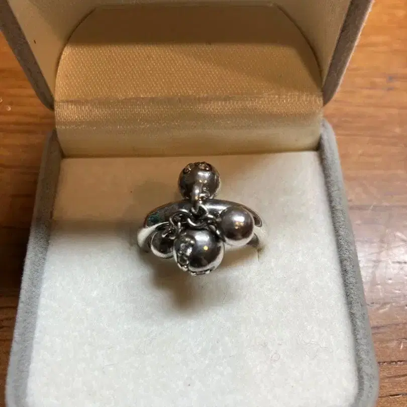 구체 장식이 특징인 실버 반지. 사이즈는 11호와 12호 사이입니다. 실버 925 외의 각인이 들어가 있지만, 잘 보이지 않아 알 수 없습니다. 상자는 포함되지 않습니다.