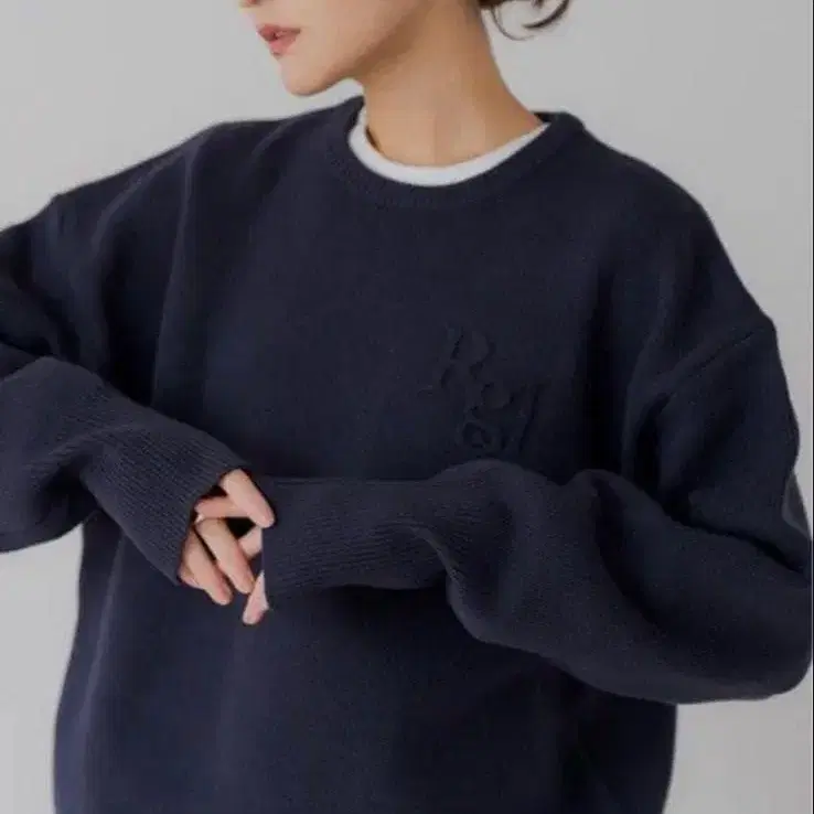 루엔 로즈 / 캐시미어 100 / 네이비 / 포켓 부착 니트