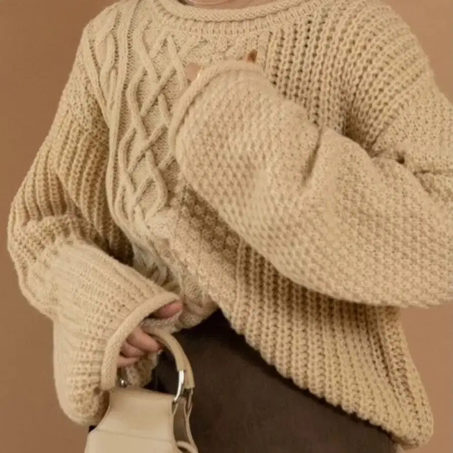 베이지 케이블 짜임 니트 스웨터