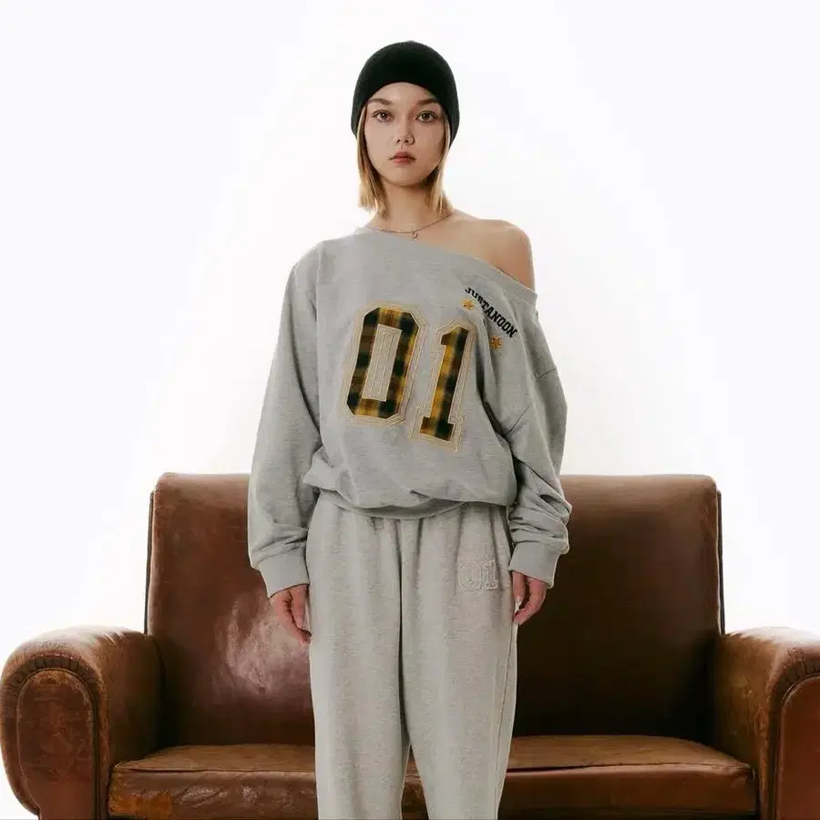 SNIDEL 오프숄더 그레이 맨투맨 트레이닝복