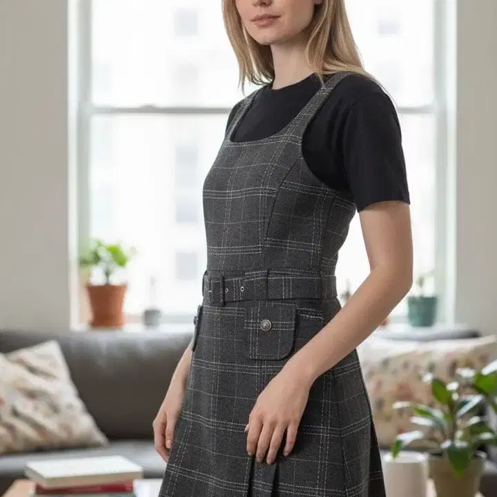 bebe (베베) 그레이 체크 무늬 슬리브리스 원피스
